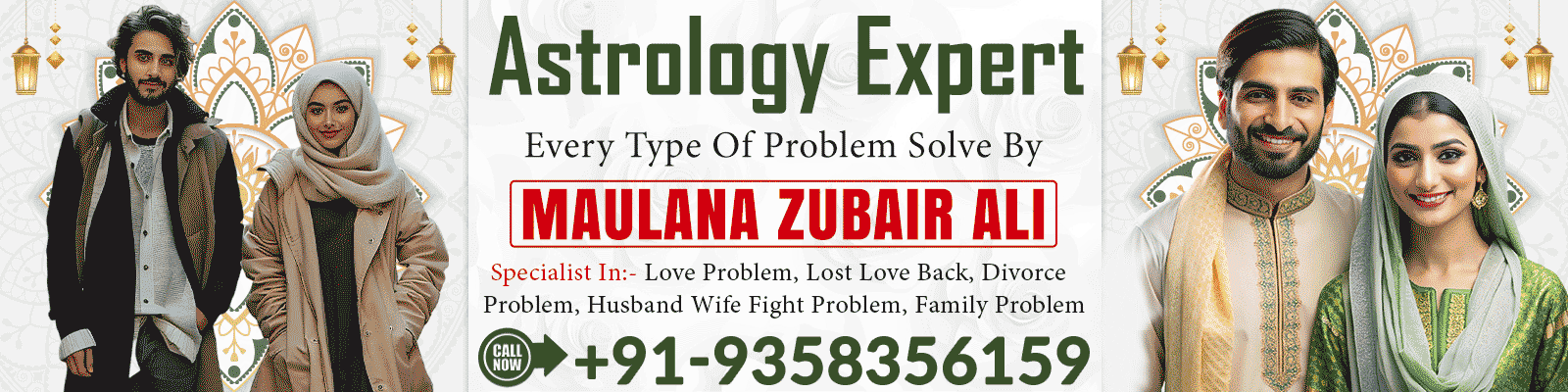 World Famous Astrologer Maulana Zubair Ali is a Muslim astrologer who claims to be able to solve all kinds of problems, including love marriage problems, inter-estate marriage problems, getting love back problems, divorce problems, job problems, love relationship problems, family problems and business problems. He claims to be able to control adversaries and make them weak or biddable, make people praise you, prevent your partner from leaving you, get rid of love problems, and more.